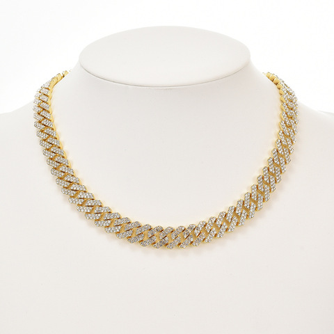 สร้อยคอแนวแฟชั่นสไตล์ฮิปฮอปคลาสสิกแนวยุโรปและอเมริกาขนาด16มม. แบบเจาะเต็ม3แถวสไตล์คิวบา